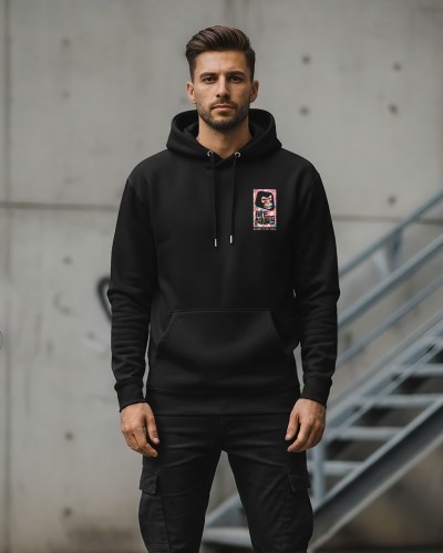 Diseño frontal sutil y explosión gráfica en la espalda. Esta hoodie mezcla estilo urbano con energía trippy en una pieza de algodón orgánico, con capucha ajustable y bolsillo canguro. Ideal para destacar sin perder comodidad.