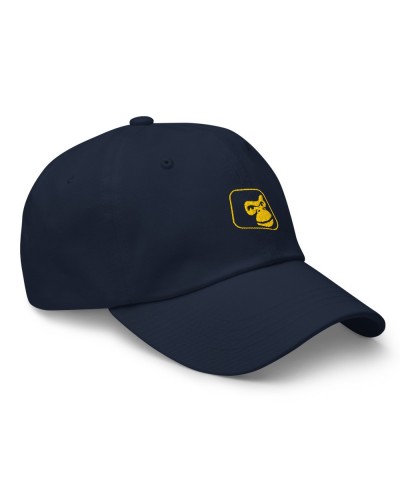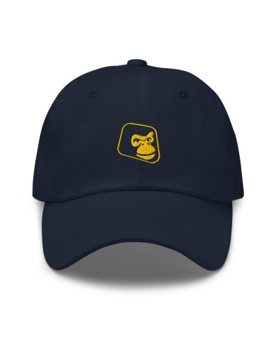 Gorra azul marino con el emblema original de Are Monkey en amarillo, una pieza versátil que combina elegancia y carácter streetwear.