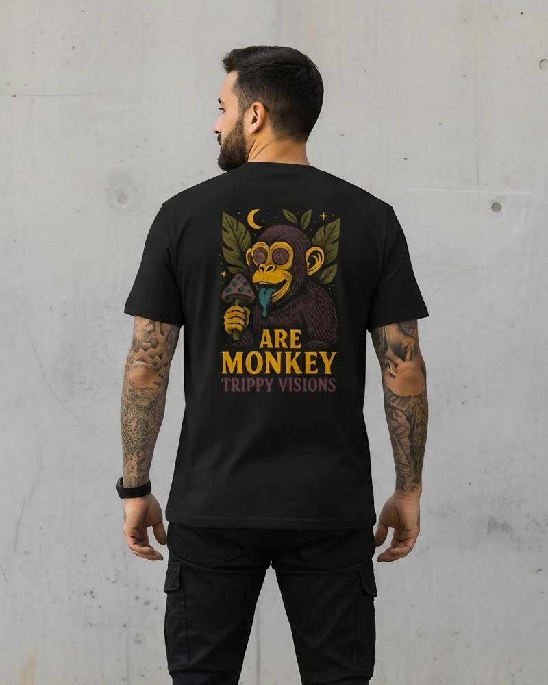 Una visión psicodélica desde lo más profundo de la jungla. Esta camiseta de algodón orgánico combina un diseño frontal minimal con una ilustración trasera vibrante en estilo neo-tribal, con tintas de alta calidad y un ajuste unisex cómodo y duradero.