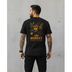 La camiseta Classic Military combina el logotipo de Are Monkey con un patrón camo oscuro que le da fuerza y actitud. El contraste del blanco sobre el camuflaje crea una pieza con carácter, perfecta para destacar con estilo en cualquier terreno.