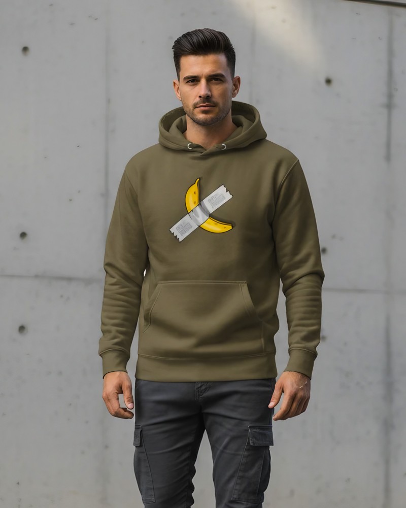 Destaca con nuestra Hoodie Banana Art, que fusiona humor y arte contemporáneo. Este diseño único de un plátano pegado a la pared es perfecto para quienes buscan originalidad y comodidad. ¡Hazla tuya y lleva el arte a tu guardarropa!
