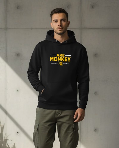 El estampado en amarillo vibrante aporta energía y autenticidad al clásico diseño de hoodie. Ideal para quienes buscan comodidad con un estilo llamativo de Are Monkey.