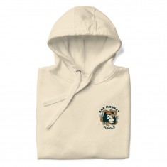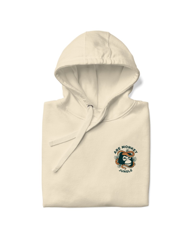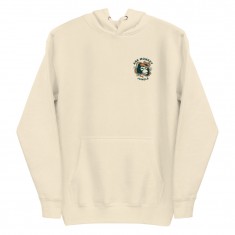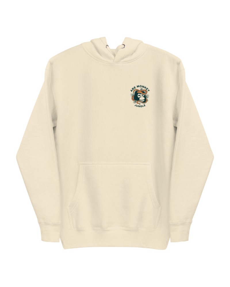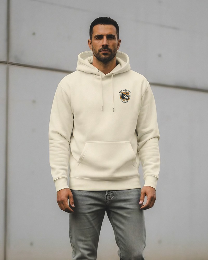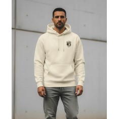 Oscura por fuera, precisa por dentro. El isotipo en tono arena resalta con claridad sobre bases profundas. Una hoodie con presencia discreta, pensada para durar.