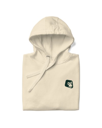 Nuestro isotipo en verde jungla destaca sobre tonos claros con un estilo sobrio y atemporal. Una hoodie cómoda y minimalista que transmite identidad sin exceso.