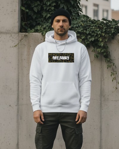 Un diseño atemporal en tonos blancos que se adapta a cualquier estilo. Esta hoodie combina simplicidad y frescura con el sello distintivo de Are Monkey.
